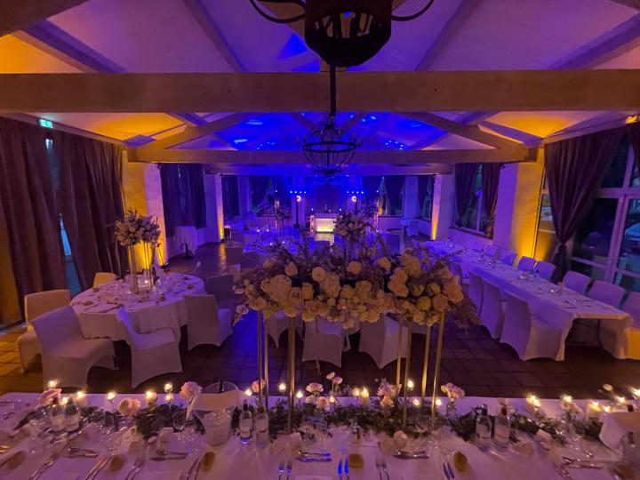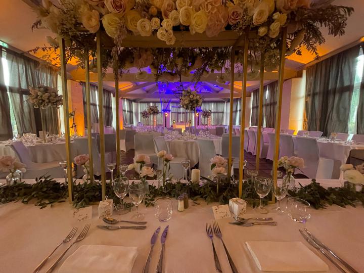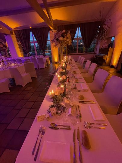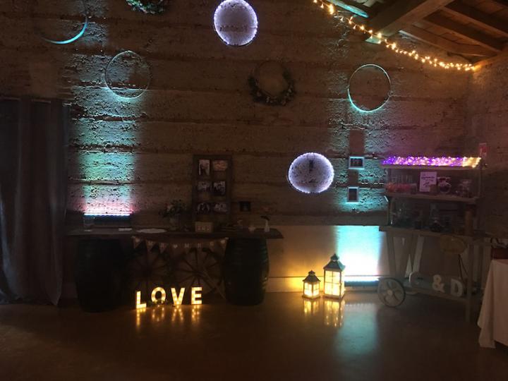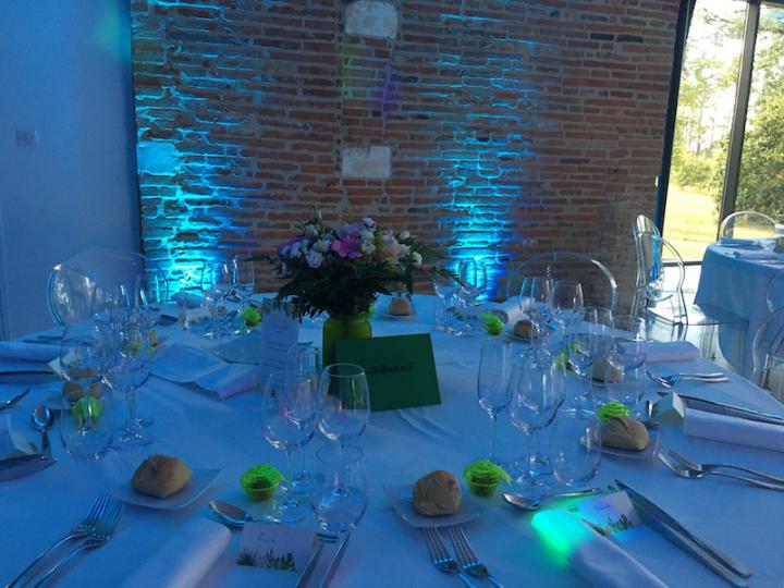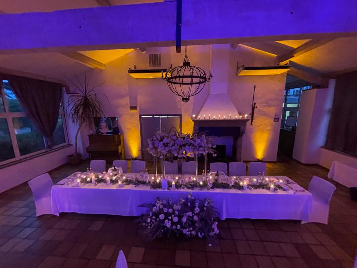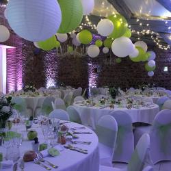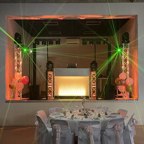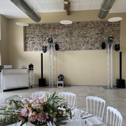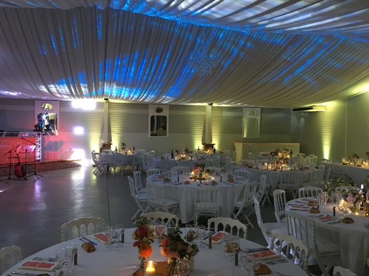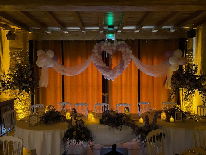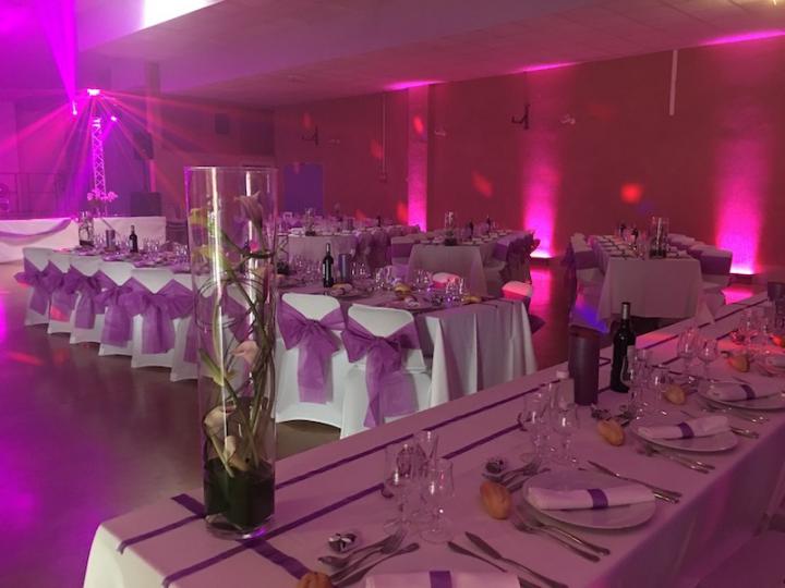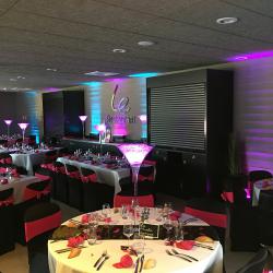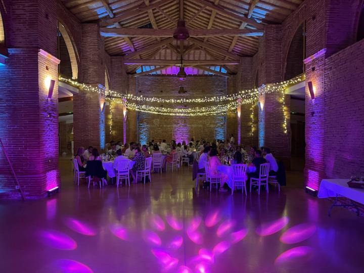 Notre installation de lumière tamisée sera répartie dans toute la salle afin de mettre en valeur et faire ressortir vos plus belles décorations et l'architecture de votre lieu de réception.